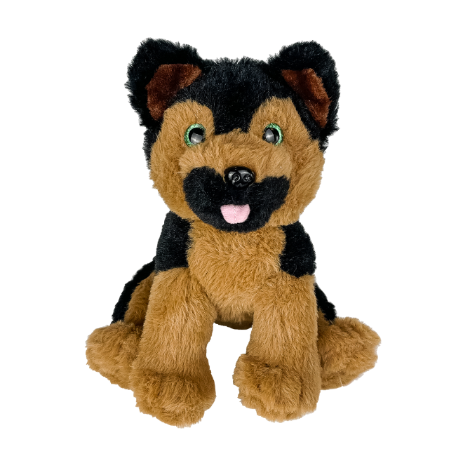 Duke the German Shepherd is a guardian by day and a snuggler by night. His sole mission in life is to be your best friend while always keeping a watchful eye out for you. Duke is also a member of the #PlushforthePlanet team and is made of recycled fabrics.